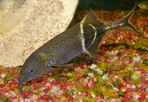 СЛОНИК НИЛЬСКИЙ (Gnathonemus petersii) относится к слабоэлектрическим рыбам. Электрические рыбы создают вокруг себя электрическое поле, изменение которого позволяет им воспринимать (осязать) окружающее пространство.