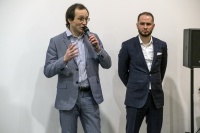 Приветственное слово от организаторов: у микрофона - Алексей Леонидович Казакевич (Генеральный директор "АЛ Инжиниринг"), рядом Кирилл Андреевич Безуглов (Генеральный директор ЦОМБ "Москвариум")