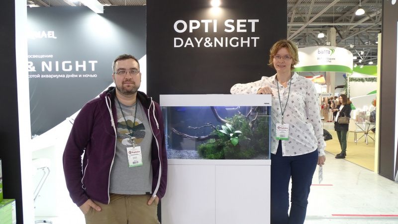 Также были показаны оформленные аквариумы Aquael Shrimp Set SMART LED D/N с новым светодиодным светом, с режимами день/ночь.