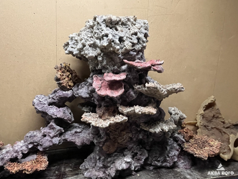Факт № 6. Декорация из стадонта (химически нейтрального пластика, который не боится ни кислот, ни щелочей) может полностью повторить рельеф уголка кораллового рифа. Наш скульптор использует для ее основы 3-D модель, а для изготовления отдельных элементов - слепки с натуральных живых камней и кораллов, что приближает композицию к естественному рельефу кораллового рифа.