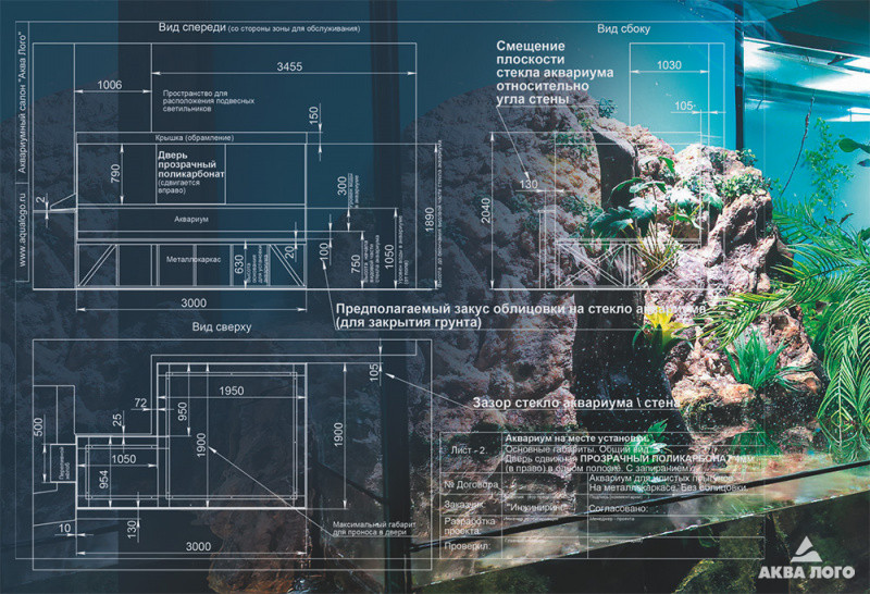 Факт № 1. Детальное проектирование – один из первых и самых важных этапов процесса изготовления аквариума (после эскизного проекта), на этом этапе также проходит изготовление чертежей и визуализаций, согласование фактур отделочных материалов и учитываются технические ограничения, особенности будущего живого населения и планируемое дальнейшее обслуживание.