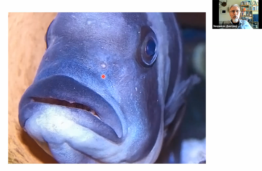 Cтарший научный сотрудник Дмитрий Зворыкин выступил онлайн. Тема его доклада "Кормление потомства орально инкубирующими цихлидами: необычная форма родительской заботы". Видеозапись доклада